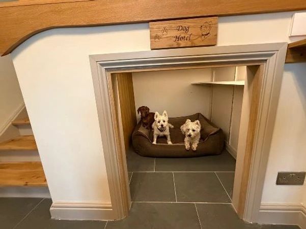 Thoughtfully designed with canine comfort in mind, the property features underfloor heating, a freestanding artisan water bowl, and a luxurious George Barclay dog bed. There’s even dimmable hotel-style lighting, creating a calm, cosy atmosphere for both guests and pets alike.